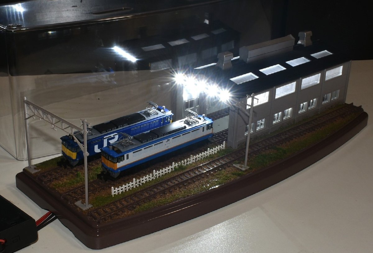 【SAZAN】鉄道ジオラマ展示台ケース付き 複線機関庫ヤード照明付き3線路(他の商品と同梱不可)※33x12cm★95 收藏