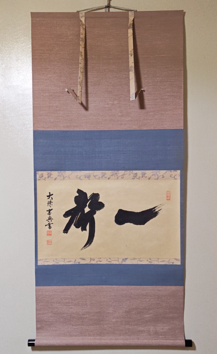 ≪茶掛≫ 大珠院 【盛永宗興】 自筆二字書『一聲』紙本 横物 桐共箱 紙外箱 真筆保証 掛軸 墨跡 花園大学学長 富山県 魚津市 收藏