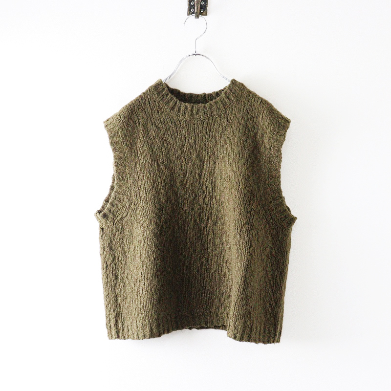 オオカミとフクロウ TANDEY ニットベスト\カーキ ウール クルーネック プルオーバー トップス【2400014664423】 收藏