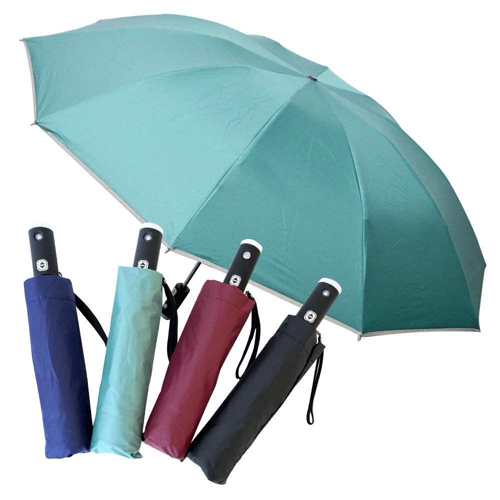 自動開閉傘 LEDライト 雨傘 日傘 折りたたみ傘 直径105cm アルミ製 10本骨 晴雨兼用 高密度撥水 UPF50+ UVカット グリーン XH772G 收藏