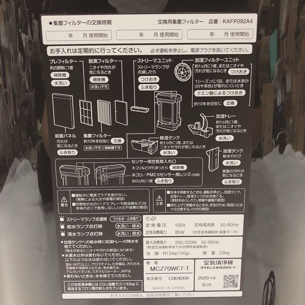 ★2-1007 動作品 DAIKIN ダイキン MCZ70WE7-T 2020年製 空気清浄機 家電 ブラウン系 追加写真有り 收藏