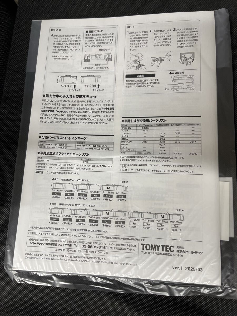送料無料 新品 ばらし TOMIX トミックス 98880 98881 JR 185-200系特急電車 はまかいじ(B7編成・踊り子色・強化型スカート)セットより インレタ 説明書