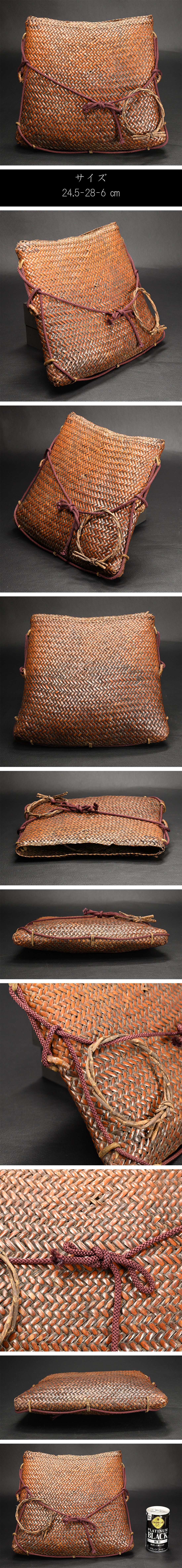 【永】c025【兵庫県の図書館や博物館の館長を歴任された歴史研究家遺族委託品】古い網代でできた味の良い小バック 花籠として 優品 收藏