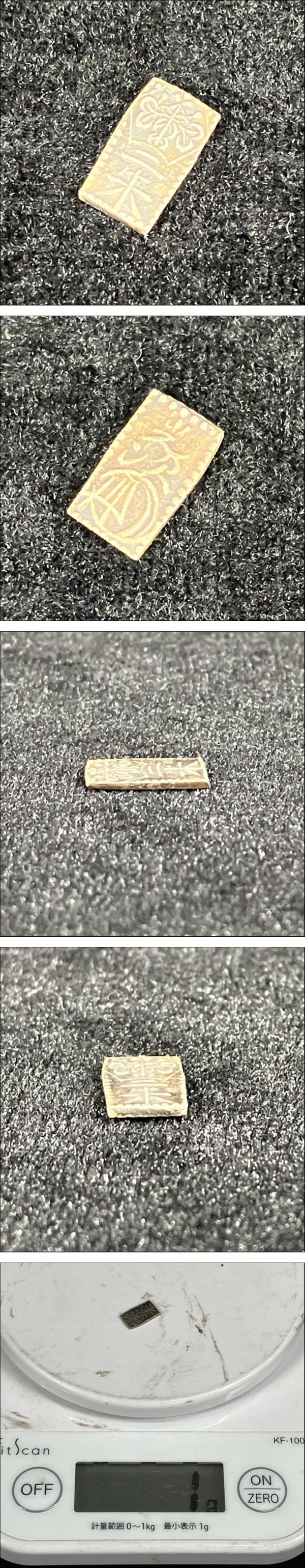 | 商品説明 | ★最後までお読みいただき、ご理解の上でのご入札をよろしくお願いいたします。 【FU 009】【 天保二朱判金 古金銀 約1g 】古金銀 金貨 日本 古銭 貨幣 アンティーク コレクション 【動作状況】 こちらは、Cになります。 A:動作確認OK(全ての機能が問題なく使用できるか保証できません) B:通電のみ確認(動作確認は行っていない為ジャンク品の可能性含む) C:動作未確認品(ジャンク品の可能性含む) D:不動品、ジャンク品 ※動作未確認の商品は保証出来ません。 【商品状態】 基本的に中古品の為、スレや傷・汚れなどございます。 多数商品がある場合、傷や汚れを写真に載せきれない可能性もございます。 あらかじめご理解・ご了承の上入札をお願いいたします。 また、細かくクリーニングしている訳ではありませんので 状態を極度に気にされる方、神経質な方は入札をお控えください。 ■写真に写るもののみの販売となります。 写真にないものは付属いたしません。 画像をご確認の上、商品の状態に納得して頂いた方のみ入札をお願いいたします。 【サイズ】 W約0.7cm×H約1.2cm×D約0.1cm ※素人採寸のため多少の誤差はご容赦ください。 【取引ナビの対応日時】 ■平日9:00-17:00となります。※土日祝日は休業 【発送方法】 発送は佐川急便よりお送りいたします。 原則ご入金後、発送まで3日~7日お時間を頂いております。落札商品の量によって発送までのお時間が前後してしまう可能性があります。商品をお急ぎの方はご注意ください。 ※発送元地域が異なる商品の同梱はできません。 また土日祝日はの取引全般をお休みしておりますので発送/連絡はできません。いつ頃発送するのか等の催促はおやめください。 ※沖縄・離島の方は【中継料】が発生し送料が高額になります為、佐川着払いとなります。 ※中継料が発生した場合、追加で中継料分の不足送料を請求させて頂きます。必ずご自身のお住まいをご確認頂いてから入金をお願い致します。 【直接引き取り】 引き取り場所は東京都八王子市になります。 詳しいご案内場所は落札後、取引ナビにてご連絡いたします。 受付時間:平日10-17時 (12-13時を除く) 商品の保管期間は支払い後、1週間(7日間)とさせていただきます。 直接引き取りをご希望される場合は、以下の通りお手続きをお願いいたします。 お取引の際は、「単品取引」を選択してください。 送料の選択では、必ず「0円(無料)」をご指定ください。 【重要】 システムの都合上、複数ご購入の場合でも「まとめて取引」は選択されないようお願い申し上げます。 ご理解とご協力のほど、よろしくお願いいたします。 ■手順 ① 取引情報の入力 ② yahoo!かんたん決済で支払うをクリック ③ 配送方法を直接引き取り0円を選択し決済を行ってください。 ④ 取引メッセージに 直接引き取り希望と、希望日、希望時間帯をお知らせください。 後程、ご案内の通知をいたします。 【注意事項】 ■発送連絡と同時に評価も入れております。評価不要の方はご落札時にメッセージでお知らせください。 ■商品到着後、破損があった場合は配送業者へ一度ご連絡をお願い致します。 ■発送方法の変更はお受けできません、また送料に納得がいかないままの入札はご遠慮ください。 ■商品到着後7日以上経ってからの返品・返金は対応出来ません。品物が到着次第すぐに商品の状態をご確認ください。 ★他にも沢山の商品を出品しております。 ご興味のある方は、他の商品も是非ご覧下さい。