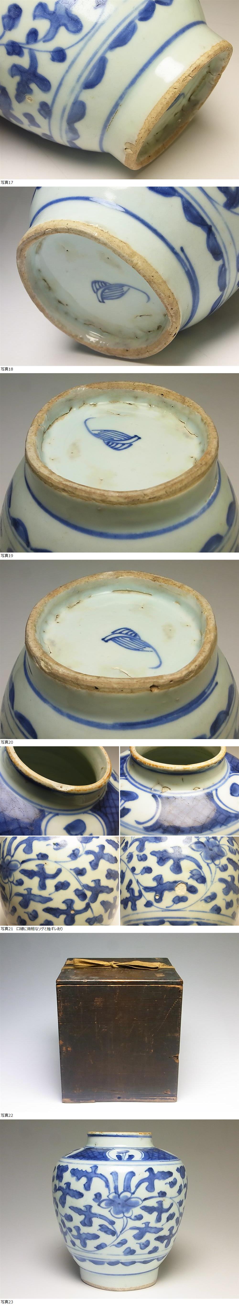 『古染付花唐草文壺 箱付 明末清初時代』の出品です。