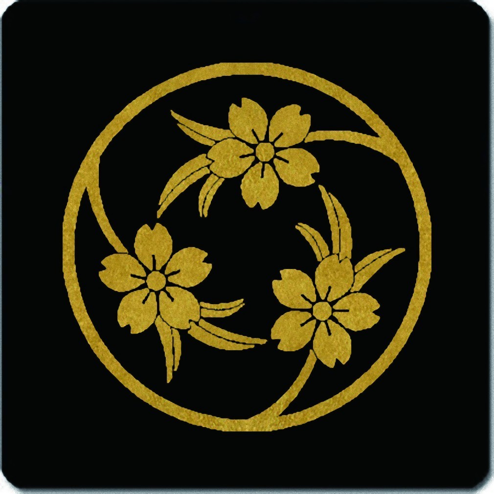 家紋シール 金紋黒地 葉付き三つ桜の丸 15cm x 15cm KS15-2988 收藏