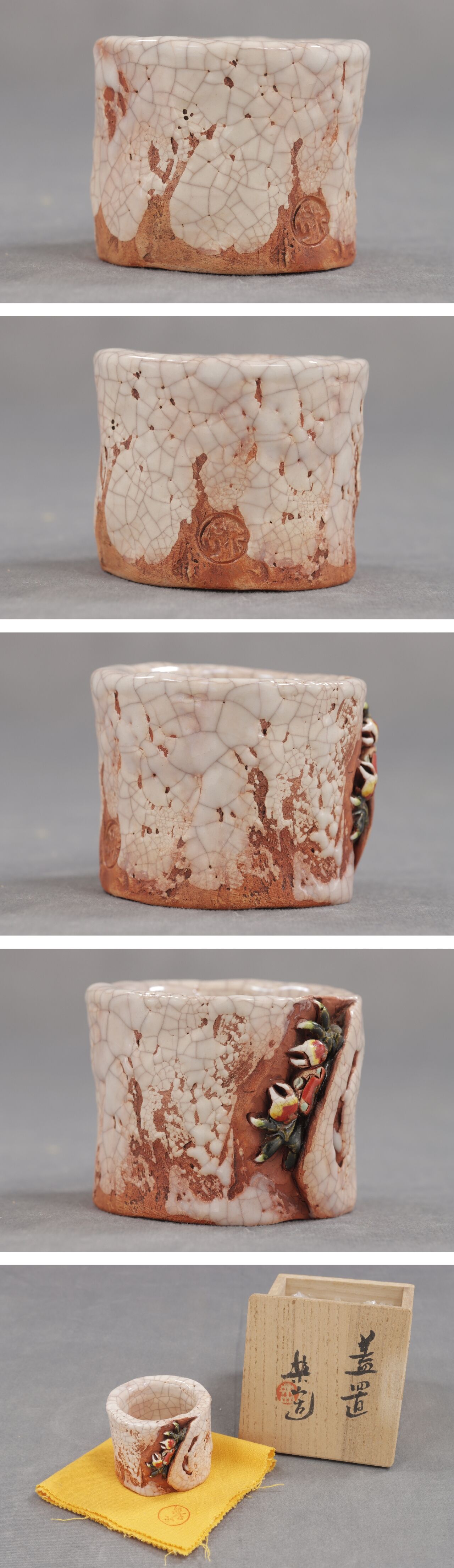 AKA.Re《茶道具 蓋置》楽山焼 恭山造 細密彫刻 蟹刻 蓋置 鉄瓶 鐵瓶 銀瓶 砲口 獣口 蟹彫 二六焼 水月焼 京焼 備前焼 瀬戸焼 收藏