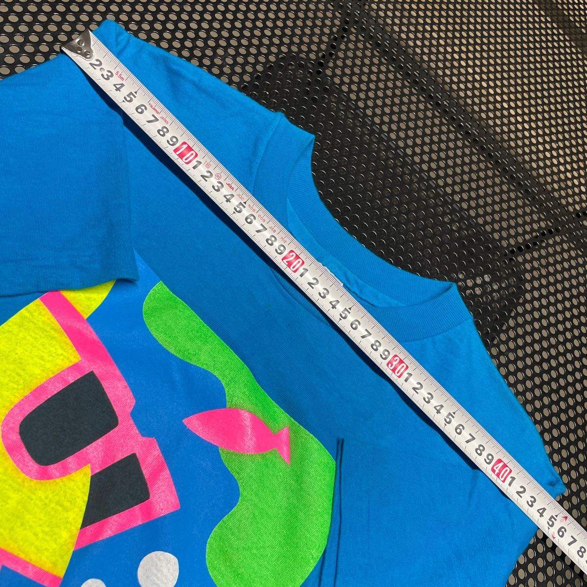 USA製 80s 90s HANES プリント Tシャツ ブルー 青 保管ジワあり 脇腹穴あり ビンテージ vintage 收藏