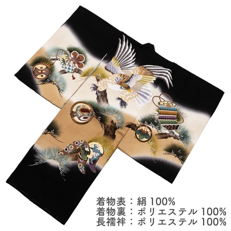 ☆着物タウン☆お宮参り 着物 男の子 のしめ 産着 掛け着 初着 鷹 刺繍 松 高級 黒 ブラック 一つ身 正絹 新品 未使用 noshime-00067 收藏