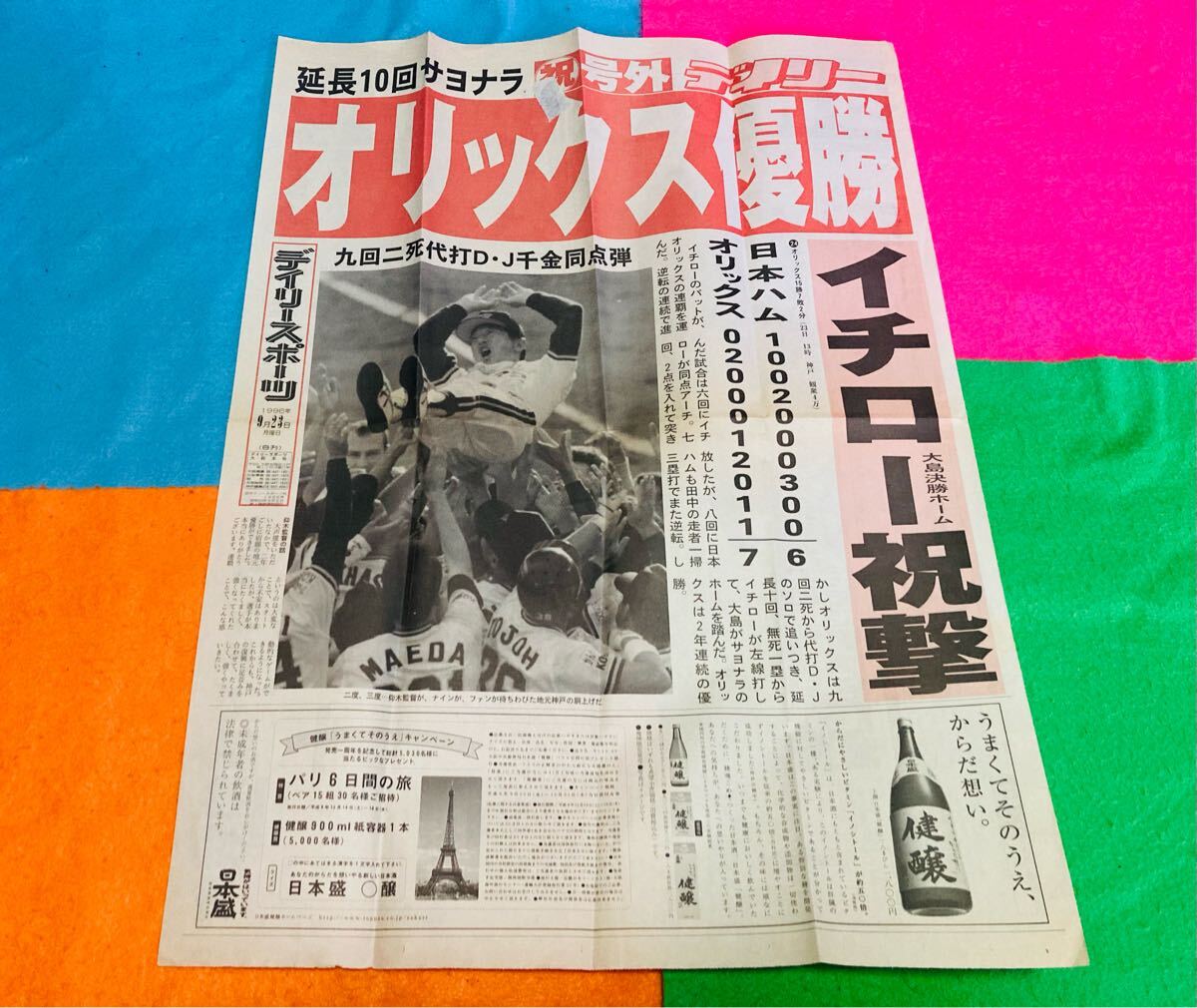 11点セット/オリックスブルーウェーブ/イチロー/ユニフォームTシャツ(F)ヘルメット/優勝号外新聞/バッグ/フィギュア/バファローズ/田口 收藏