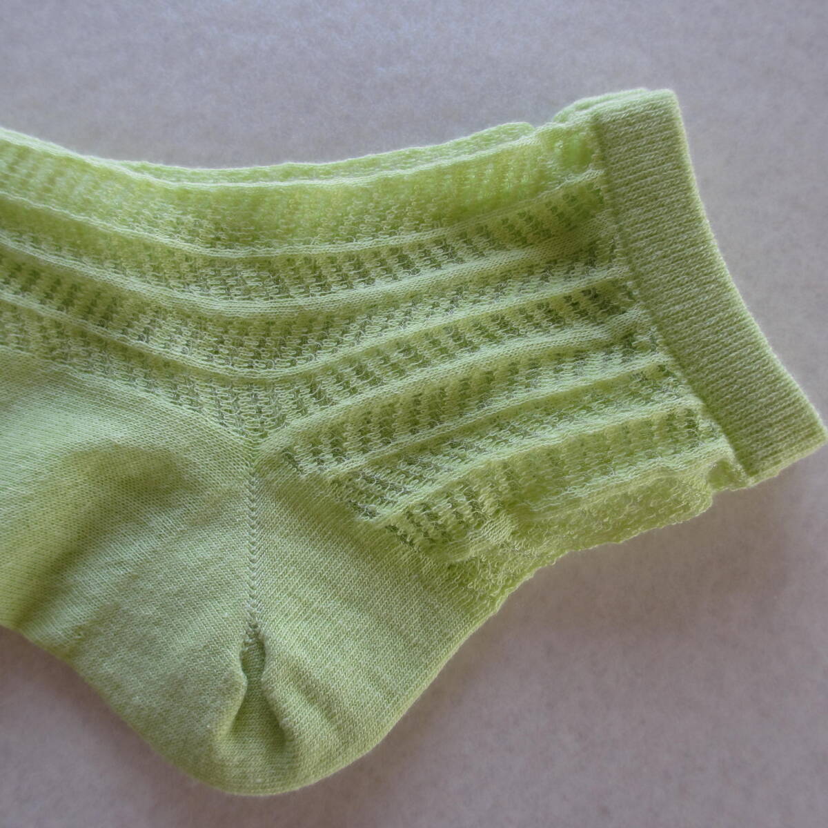 爽やかな透かし編み模様のソックスのお品です。