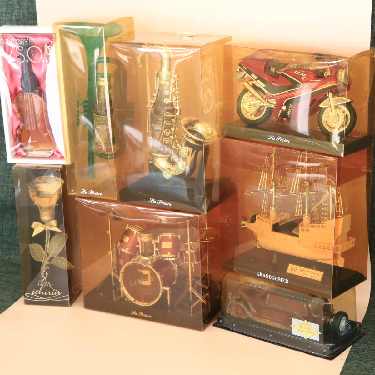 あ//Q0287 ブランデー リキュール ミニチュアシリーズ テナーサックス、ドラム、帆船、トランペット、クラッシックカー、他 計8個 收藏