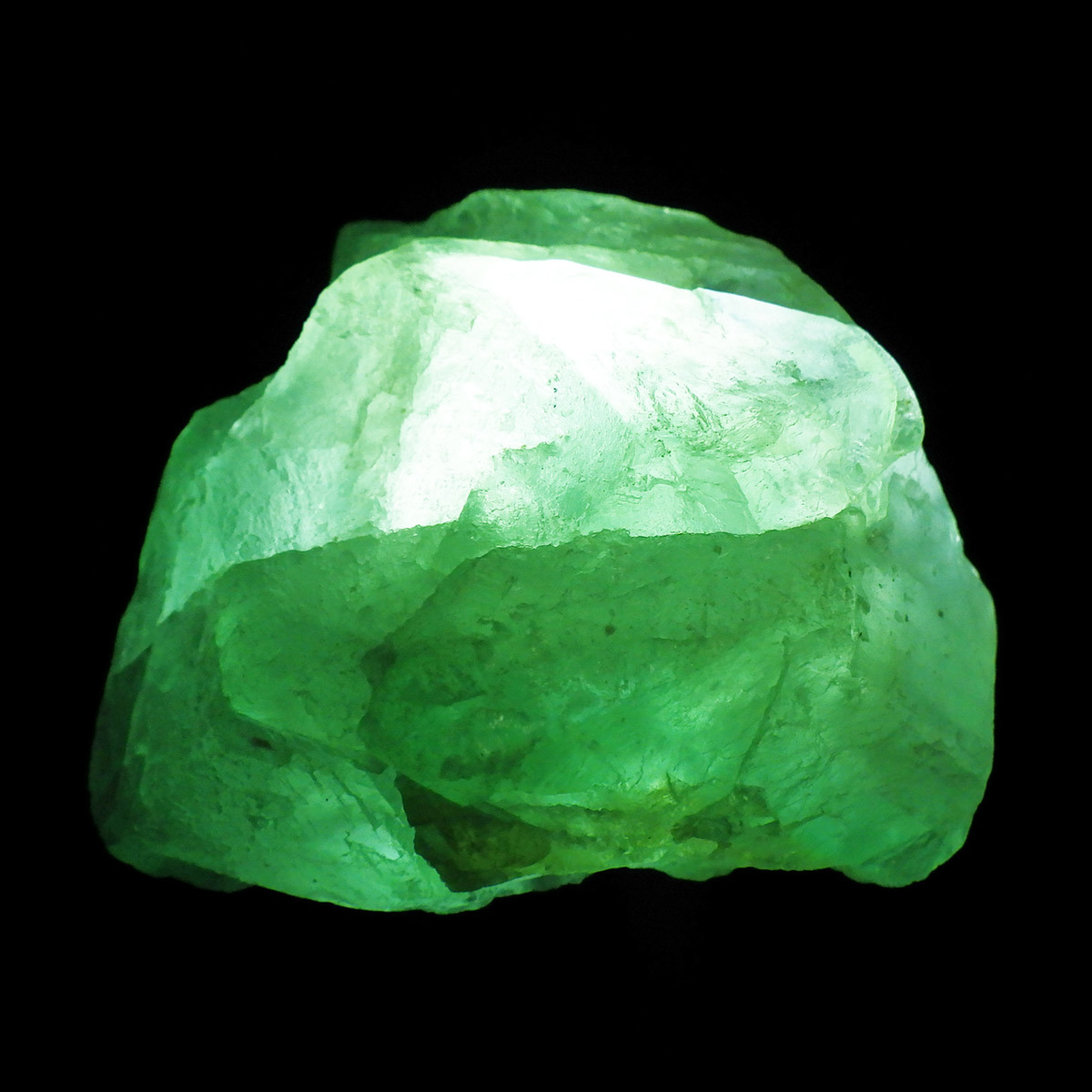 南アフリカ共和国、ノーザンケープ州のリームファスマーク産のグリーンフローライト原石です。鮮やかなライトなグリーンが特徴的。透明感もあり光を通すとまた美しく煌めきます。また、ブラックライトに反応し見事な青色の蛍光を楽しめます。