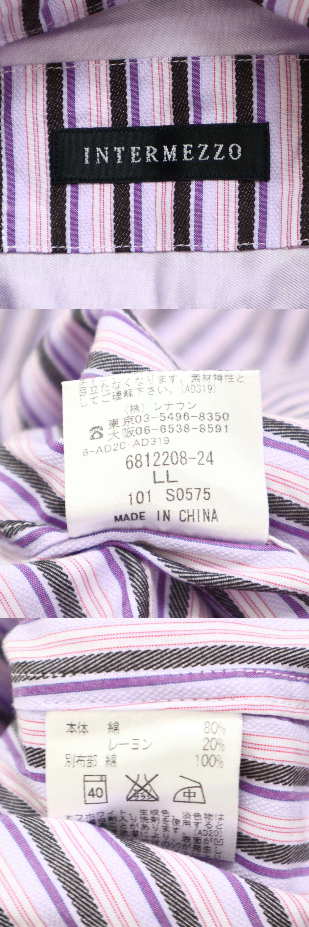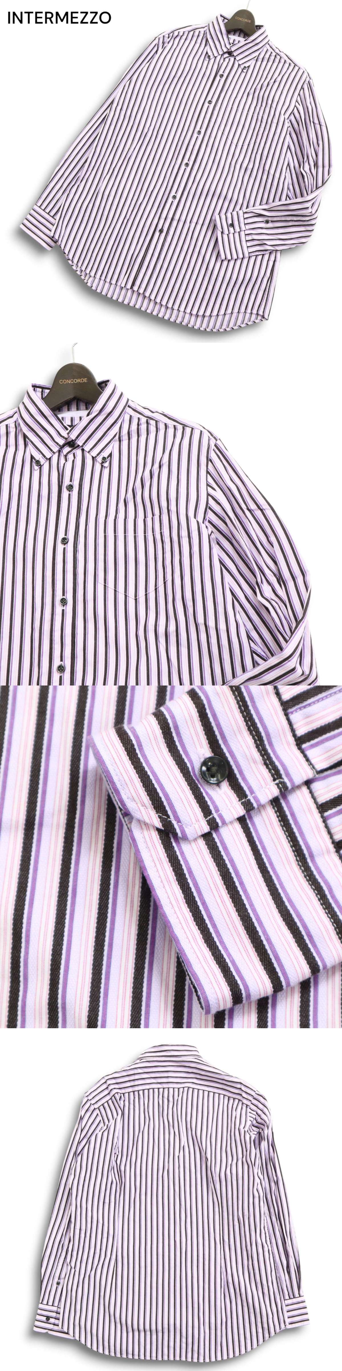 INTERMEZZO インターメッツォ レナウン 通年★ レーヨン 長袖 ボタンダウン ストライプ シャツ Sz.LL メンズ 大きいサイズ 收藏