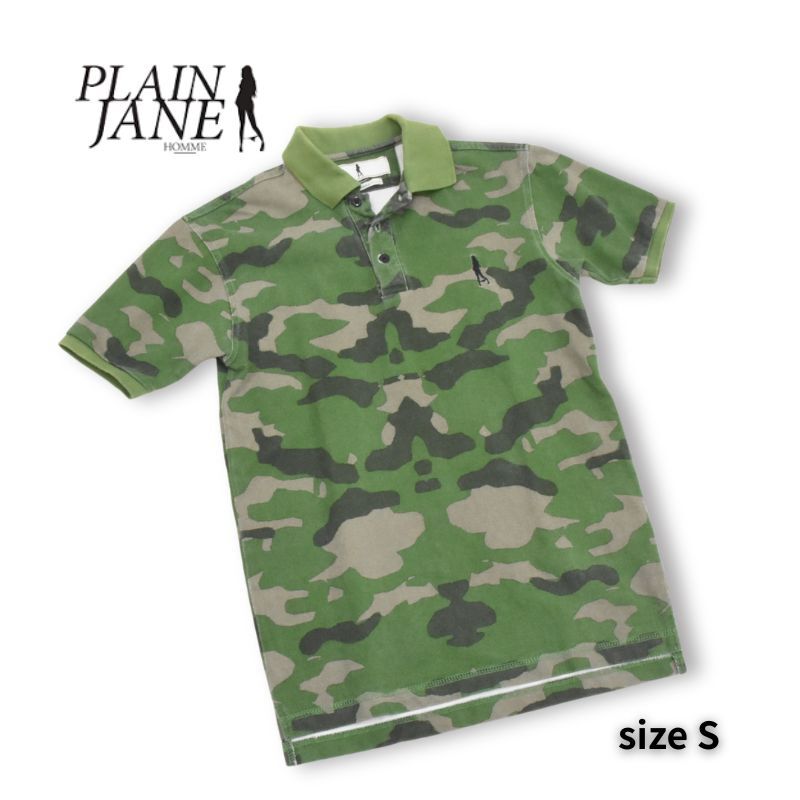 プレーンジェーン◇迷彩柄鹿の子ポロ◇サイズS◇グリーン系◇プレーンジェーン