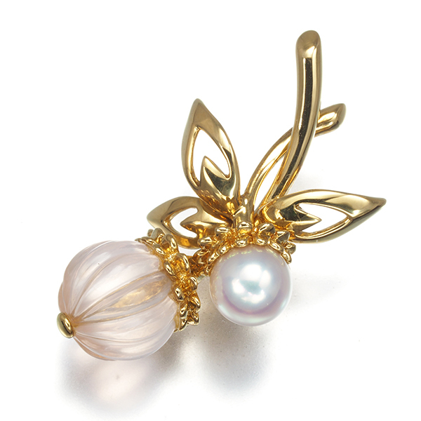 なめらかなカーヴィングを施したローズクォーツに 香るような魅力あふれるミキモトならではの美しいブローチ。サイドには艶やかな上質アコヤ真珠の輝きを演出。細やかなデザインからも醸し出されるエレガントなニュアンスを装いにお楽しみください。 |