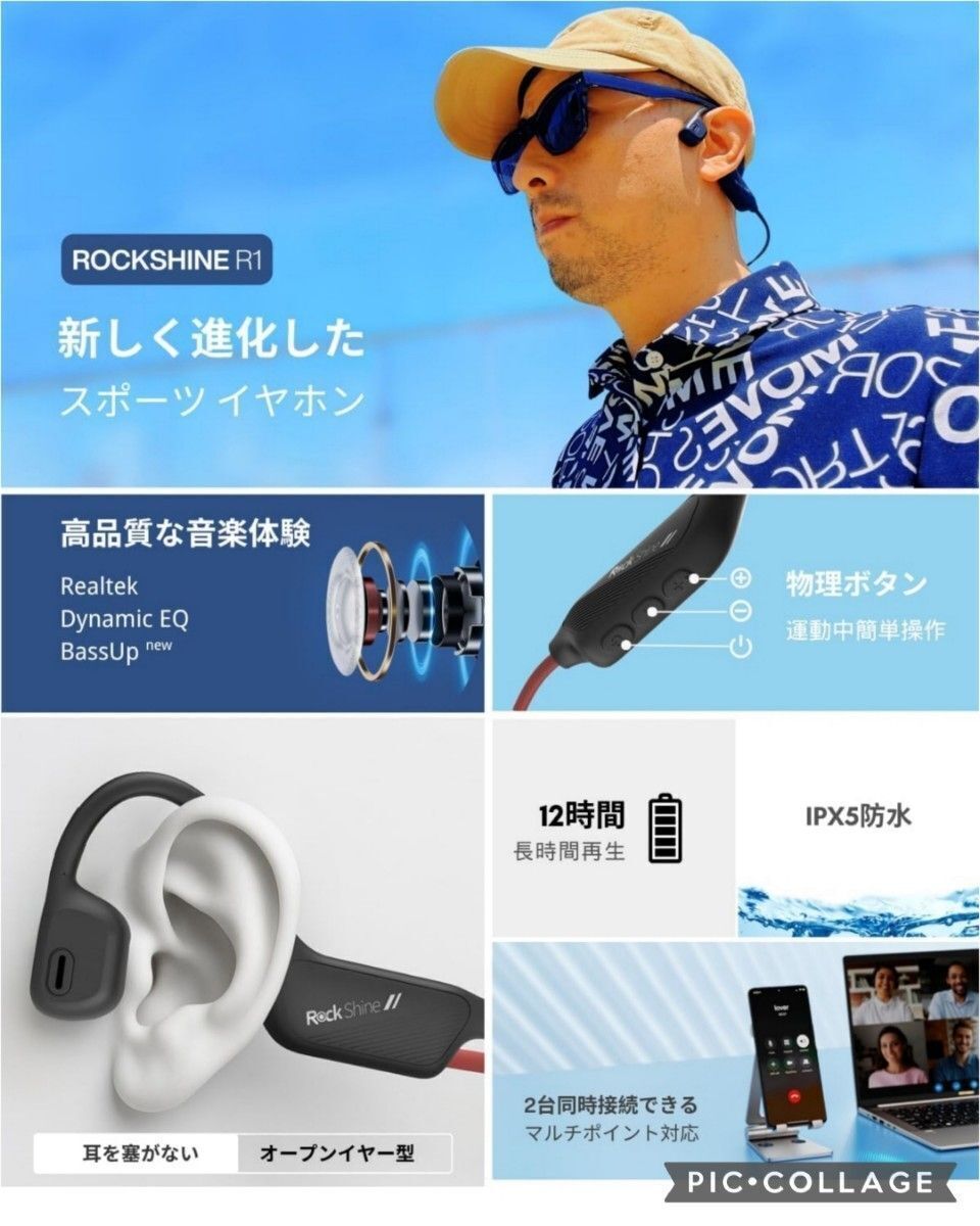 Bluetooth空気伝導 イヤフォン オープンイヤー耳掛け式 スポーツタイプ IPX5防水 ワイヤレス 自動ペアリング 黒 收藏