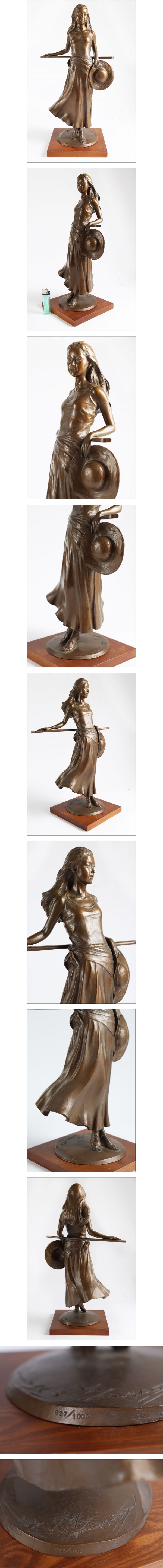 人気実力作家 【大道寺光弘】作 ブロンズ少女像「藍色の風」 927/1000 限定品 E913 收藏