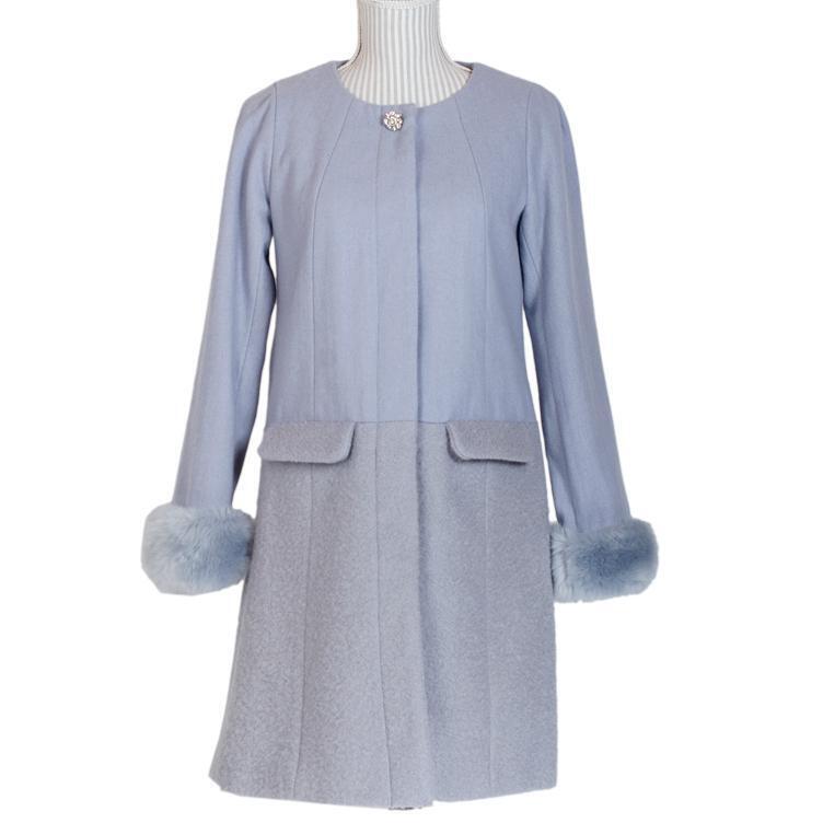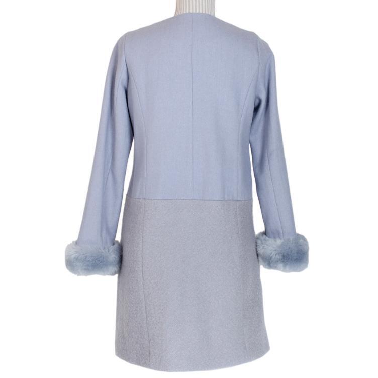 アースミュージックアンドエコロジー ウールコート ブルー Sサイズ ノーカラー ファー earth music&ecology 收藏