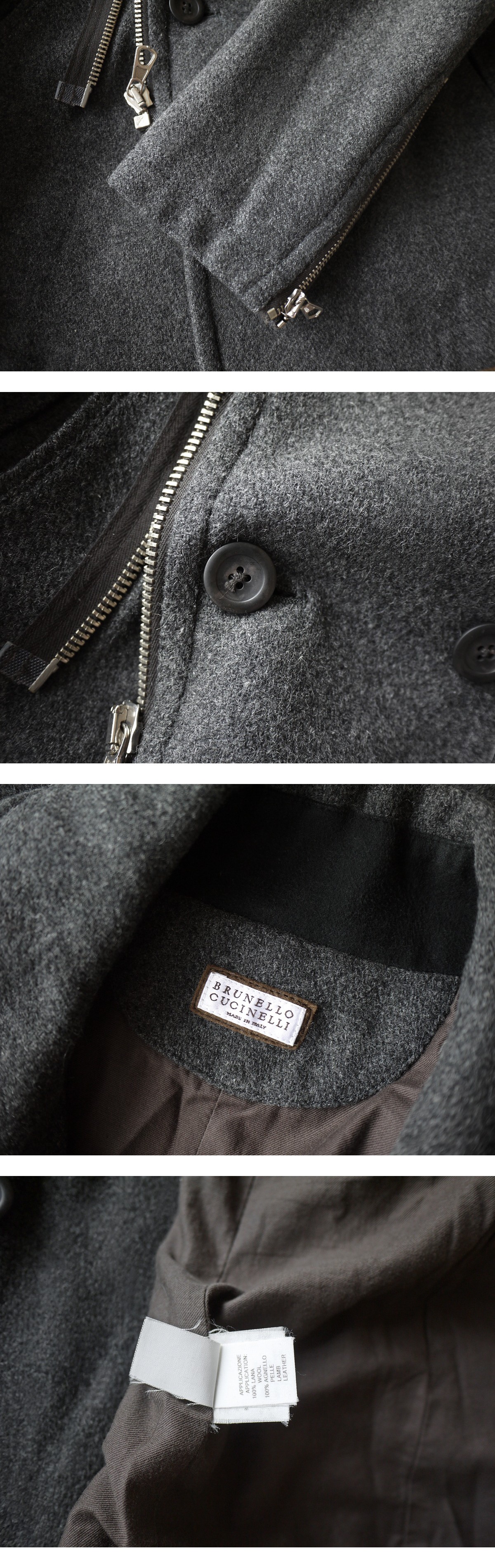 正規品 最高級 ブルネロクチネリ Brunello Cucinelli ミックスウールメルトン ダブルブレスト コート ライダースブルゾン ジャケット 收藏