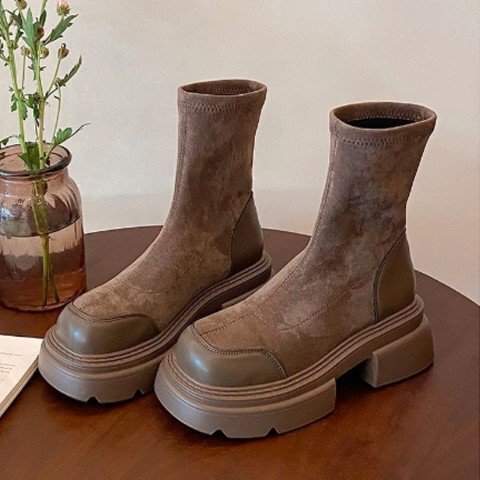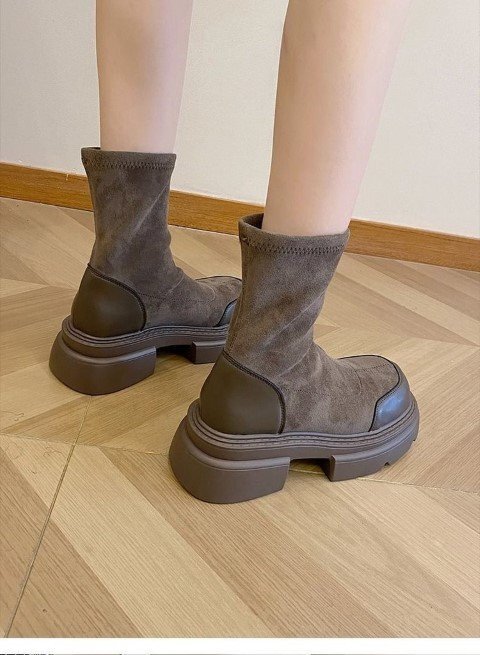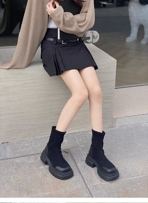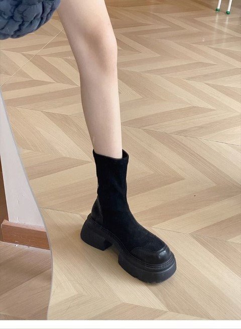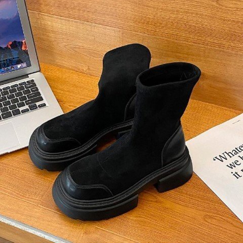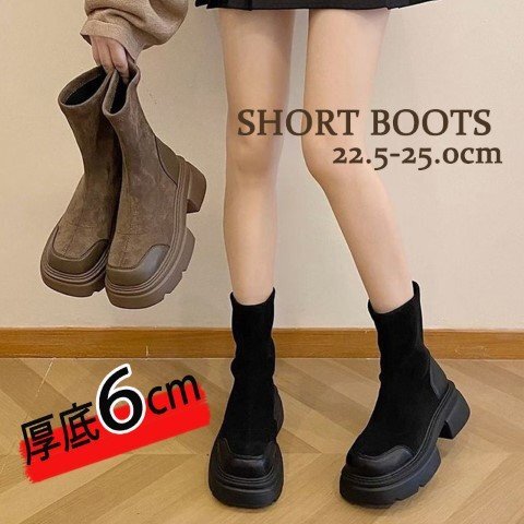 レディース 靴 ショートブーツ ミドルブーツ スタイルアップ 厚底 太ヒール 茶色 黒 ブラック 23.0cm(36) 黒 收藏