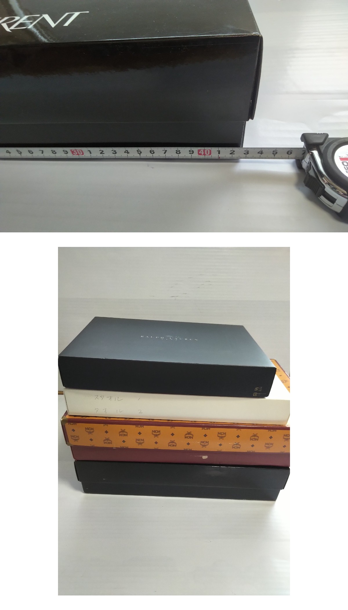 | 商品説明 | ![]() ![]() powered by auction-labo.com 未使用保管品のタオル等を4点まとめての出品です。 記載の箱サイズは素人による計測ですので若干の誤差はご容赦下さい。 1 小田急デパート箱 GIVENCHY タオルセット ※箱側面に2か所手書き文字あり 箱サイズ 幅 40cm 奥 29cm 2 RALPH LAUREN HOME ハンドタオルセット 箱サイズ 幅 34cm 奥 24cm 3 MCMMB3053 綿毛布(綿100%) 140cm×200cm 箱サイズ 幅 48cm 奥 33cm 4 YVES SAINT LAURENT 綿100% タオルケット 箱サイズ 幅 43cm 奥 33cm こちらは未使用品(保管品)となります。 箱には経年による汚れ・傷・日焼け・へこみ・色あせや、セロテープ跡などがあります。 画像に写っているものが全てになります。 計測メジャーや秤は付属しません。 部品の不足・商品の状態等について確認しきれていない可能性もありますので、 画像を必ずご確認下さい。 現状での出品になりますので、 メンテナンスや修理等が必要な場合は 落札者様ご自身で行って頂ければと思います。 上記の内容をご納得頂いてからの入札をお願い致します。 | |