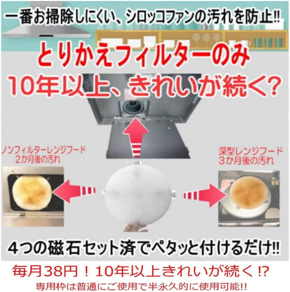 ビーワンコーショップ 換気扇フィルター シロッコ 直径245×245mm丸形 ( 交換用レンジフィルターのみ 12枚)特厚1cm 收藏