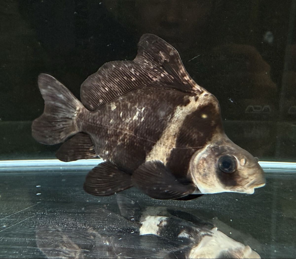 左前方のヒレが少し短くなっておりますが、生まれつきの特徴によるもので、健康状態には問題ございません。泳ぎにも支障はありません。完璧な個体をお求めの方は、入札をご遠慮いただけますと幸いです。