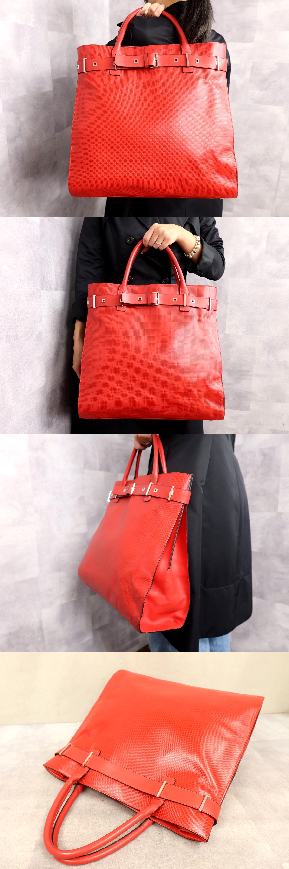 ●美品●BOTTEGA VENETA ボッテガ ヴェネタ●メンズ●マルコポーロ●PVC カーフ レザー 本革●ハンド バッグ●赤●SV金具●A4●Js62432 收藏