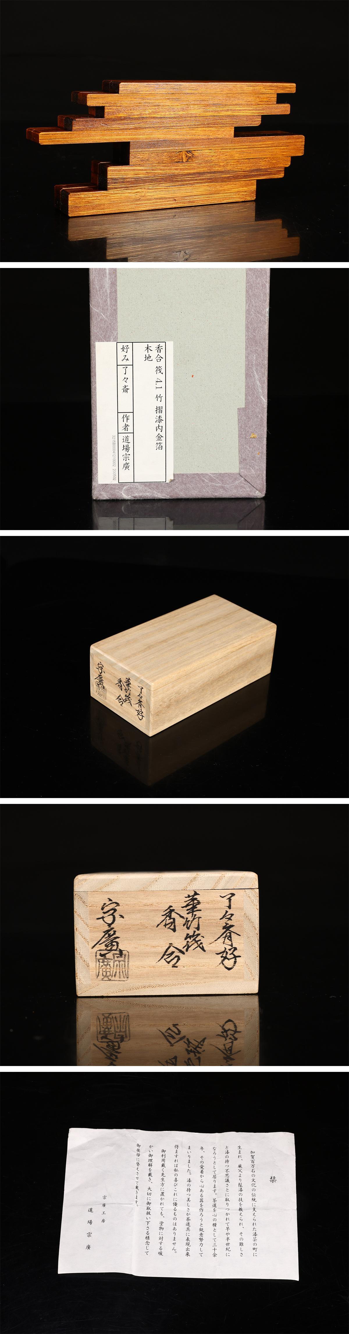 【吉】MB911 【道羽宗廣】 了々斎好 華竹筏 香合 摺漆内金箔/共箱付 美品! 收藏