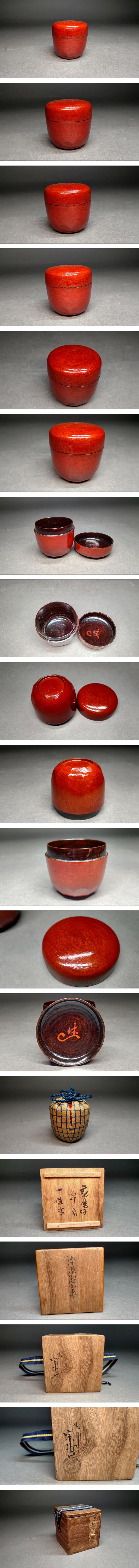 【茗】五代 中村 宗哲 作 漆張溜 小棗 達磨 好 官休庵 一啜斎 書付 共箱【休翁 好々斎 近左 有隣斎 愈好斎 一指斎 宗守 武者小路千家】 收藏