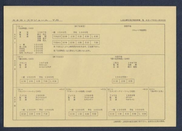 チラシ■1987年【キネカ・スケジュール 7月】[ A ランク ] 単色刷り 片面/次郎物語/蘭の肉体/スタンド・バイ・ミー 他 收藏