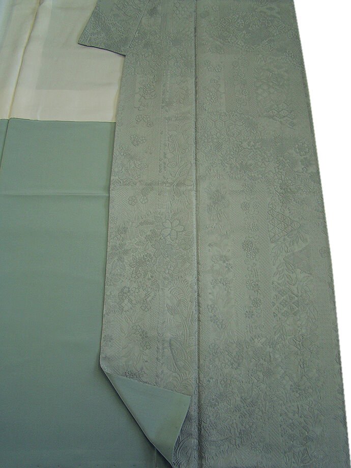 | 商品説明 | こちらのお品は「袷」ですので10月から5月までお召頂ければと思います。 とてもしなやかで柔らかな着心地良いぽってりとした重めのちりめん地のフクレ織の生地、 落ち着きあるウォーターグリーン色地に花草、亀甲、菱等のフクレ織の色無地・小紋、 八掛は共色(正絹)、幅広い年代の方にお召頂けます。 |