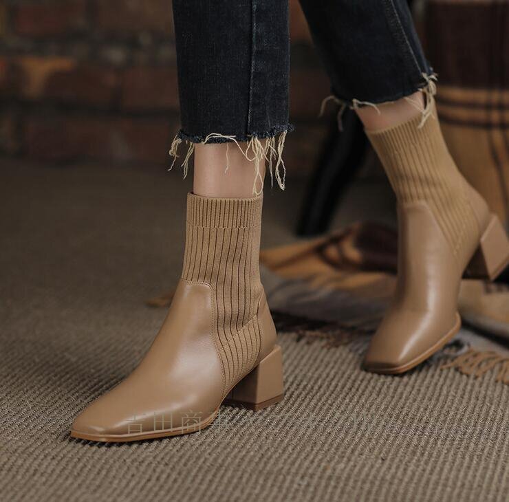 ☆新品秋冬 上質 サイドゴアブーツ レディース ビジネスシューズ 革靴 PU革 幅広 アウトドア 軽量 通気性 ミドル丈 ベージュ24c3色 收藏