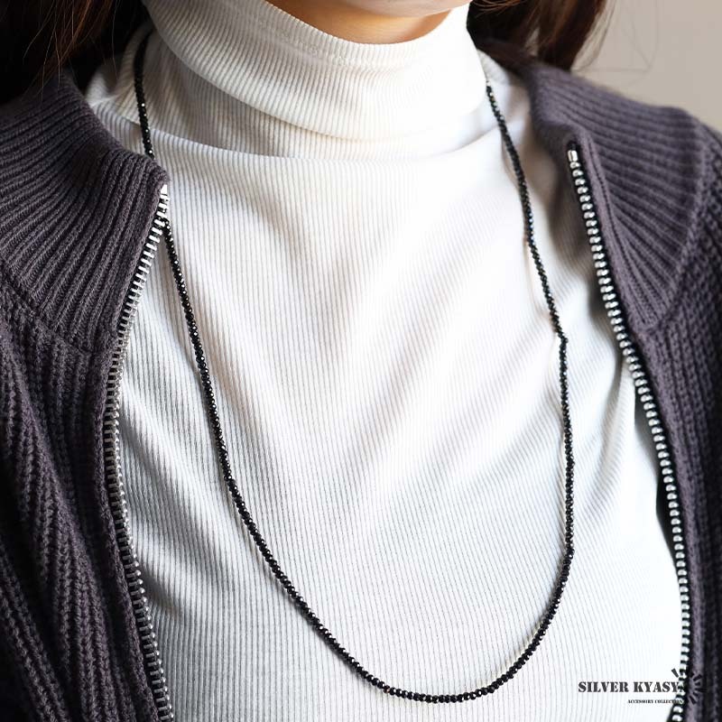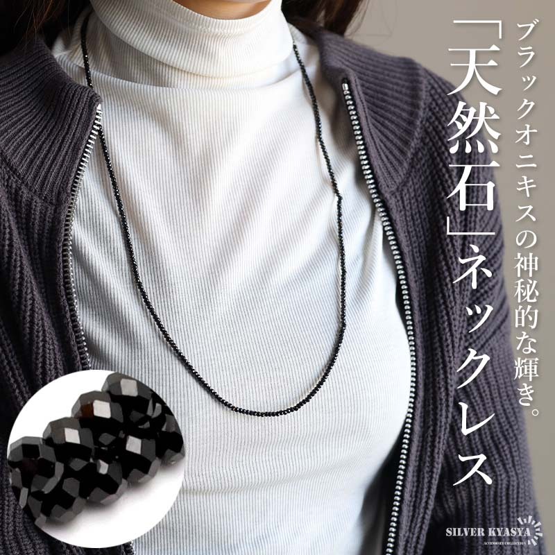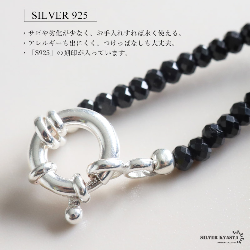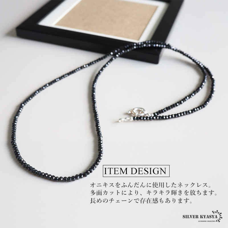 シルバー925素材 天然石 オニキスネックレス 一連 ビーズ チェーンネックレス パワーストーン メンズネックレス 收藏