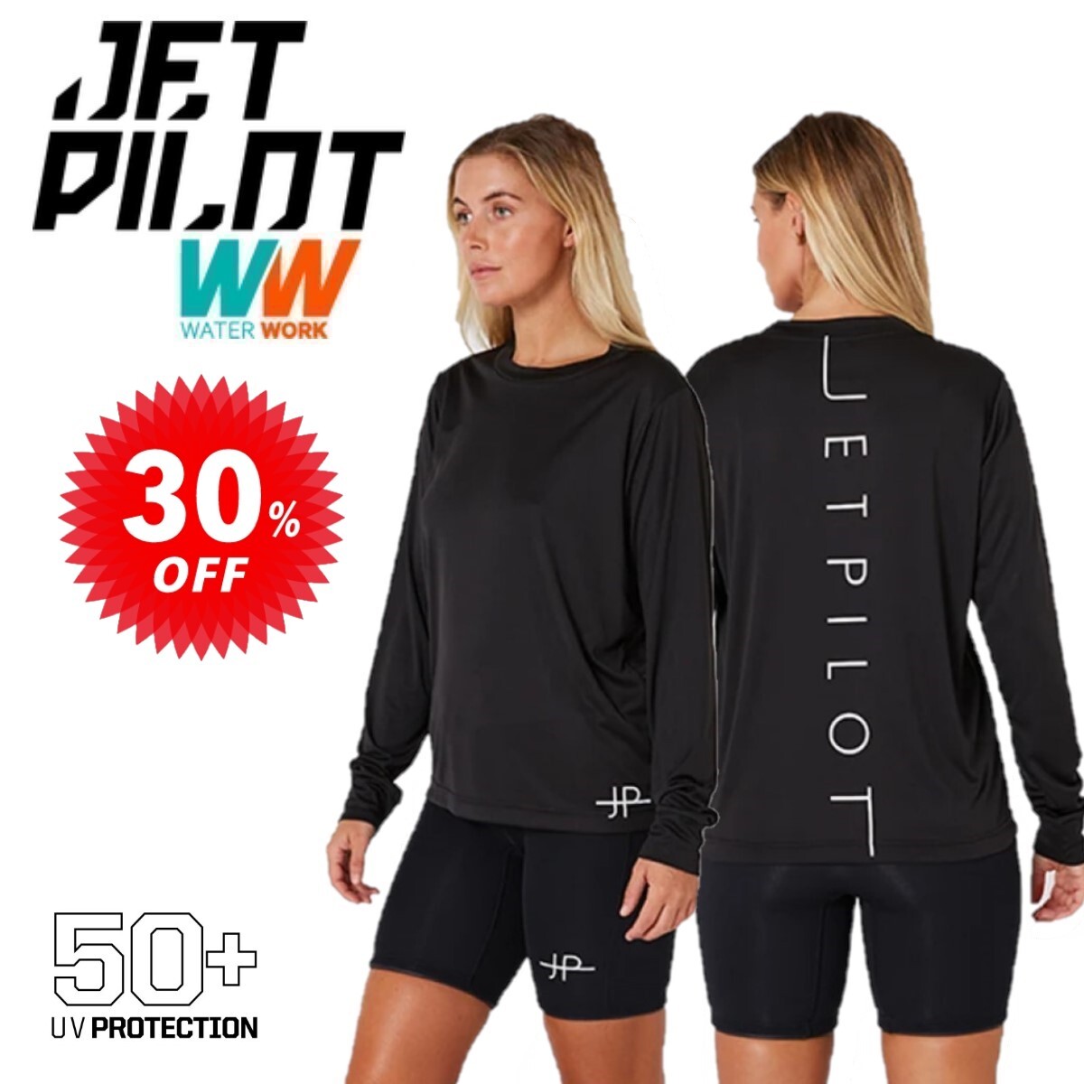 ジェットパイロット JETPILOT レディース Tシャツ 速乾 セール 30%オフ 送料無料 コーズ L/S ハイドロ Tシャツ S23020 ブラック 12/L 長袖 收藏