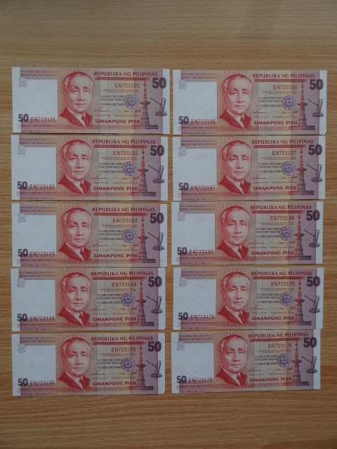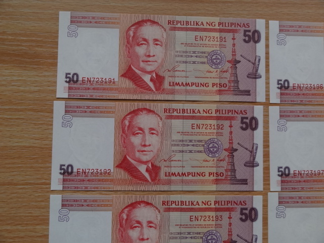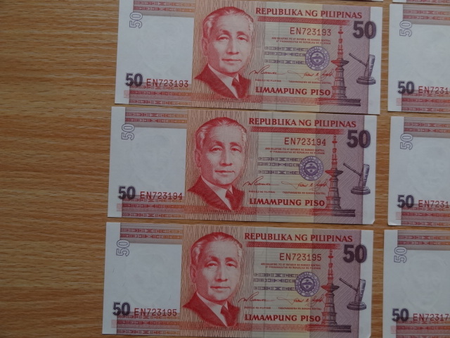 ■フィリピン紙幣 旧紙幣 50ペソ 8枚連番 +2枚連番 計10枚 ほぼピン札 美品■ 收藏