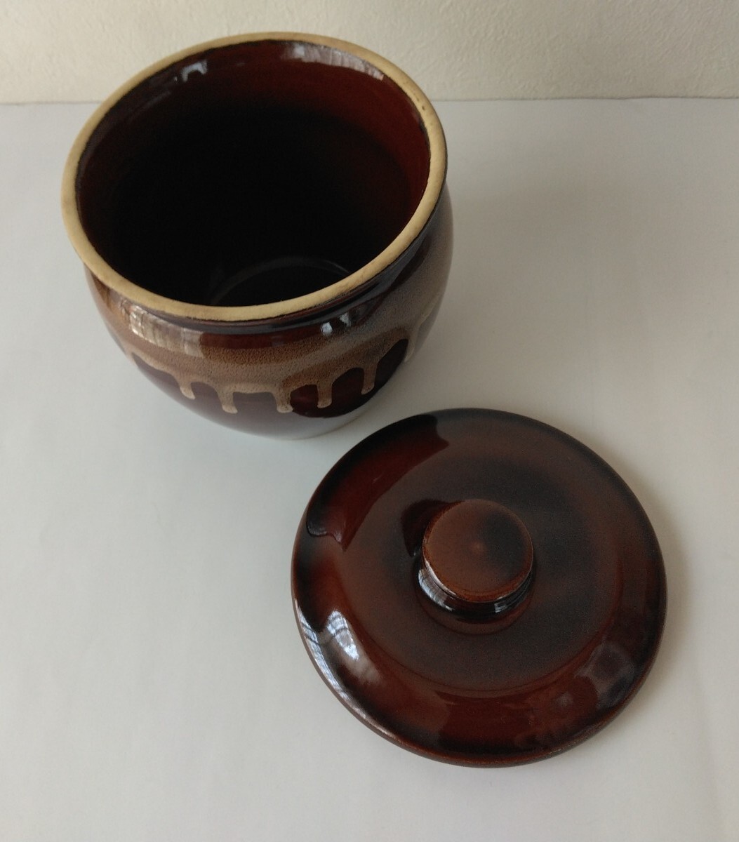 【未使用】かめ/壺/陶器/蓋付/食器/保存容器/漬物容器/味噌カメ/梅干し容器 收藏