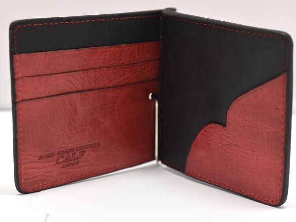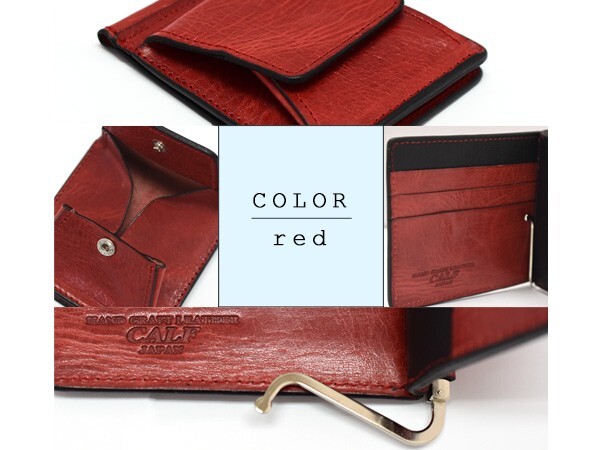 CALF カーフ 本革 マネークリップ ウォレット 【レッド red】 レディース メンズ 女性 男性 二つ折り プレゼント ギフト 送料無料 收藏