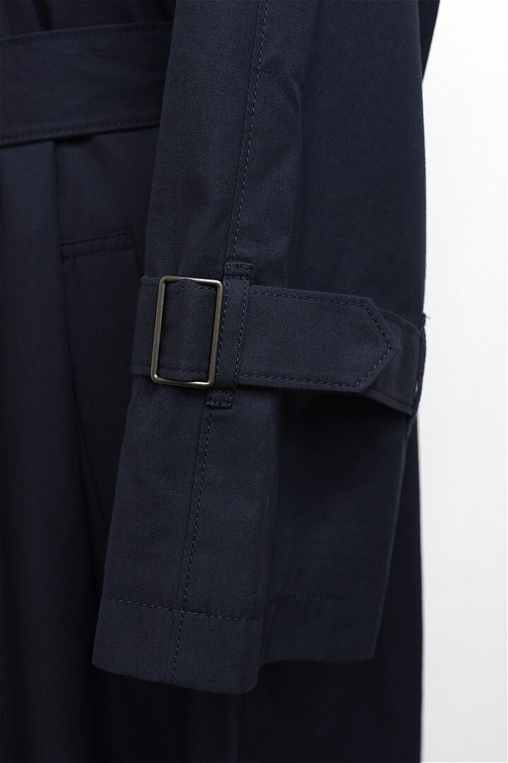 I475/UNITED ARROWS ステンカラーコート ロングコート 比翼ボタン ウエストベルト コットン シルク混 38 M 濃紺 收藏