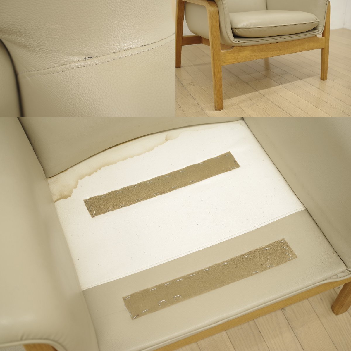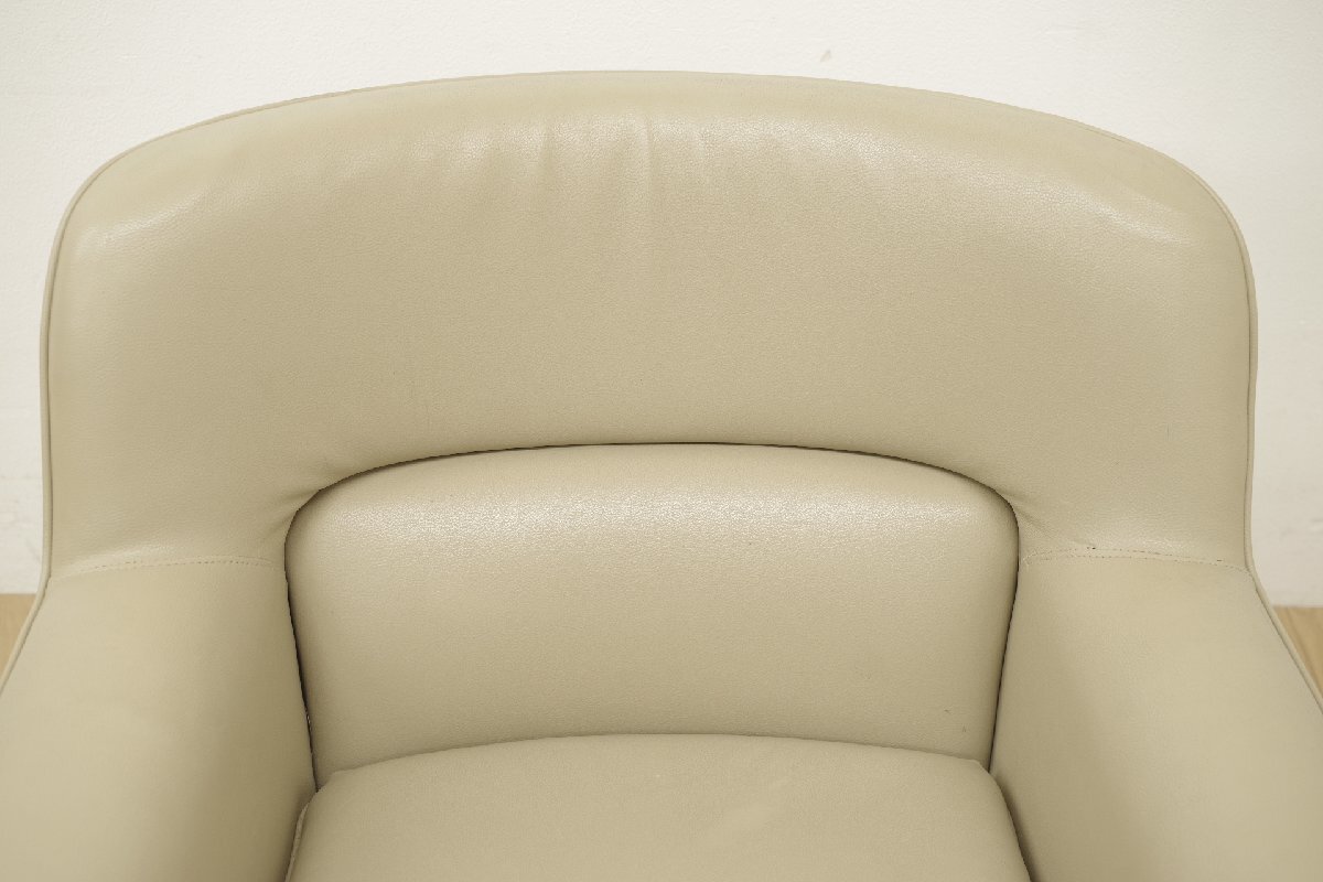 | 【商品紹介】 天童木工よりチェントロ イージーチェアのご紹介です。 剣持勇デザインで古くから愛されているチェントロ。 無駄のないシンプルなデザインながら、絶妙な和モダンを演出してくれます。 座り心地もさることながら、合皮でお手入れがしやすいながらも少し高級感のある雰囲気もある万能な1脚です。 詳しくはメーカーサイトを御覧下さい。 この機会に是非ご検討くださいませ。 【商品状態】 中古品です。 待合にて使用されていたお品ですが、脚部に清掃では落としきれない汚れや木の剥がれがございます。 また座った際の左アームの付け根あたりに一部僅かな破れがございます。 へたり等は感じられませんが、掲載写真にて状態をご確認の上、ご検討くださいませ。 この他にも商品を多数出品しておりますので、こちらから御覧下さい。 | ||