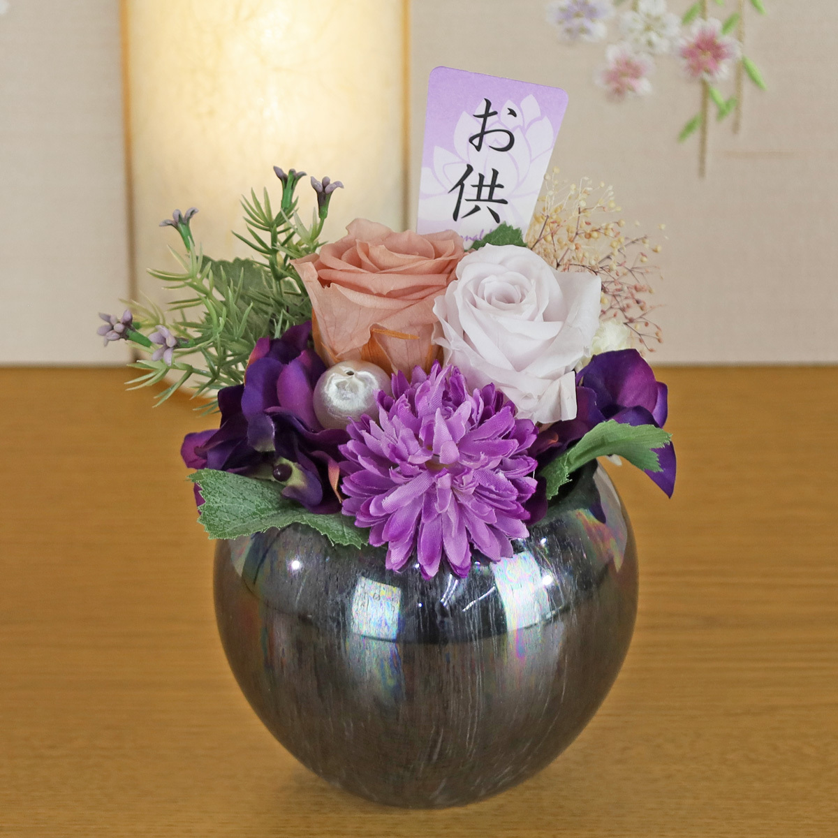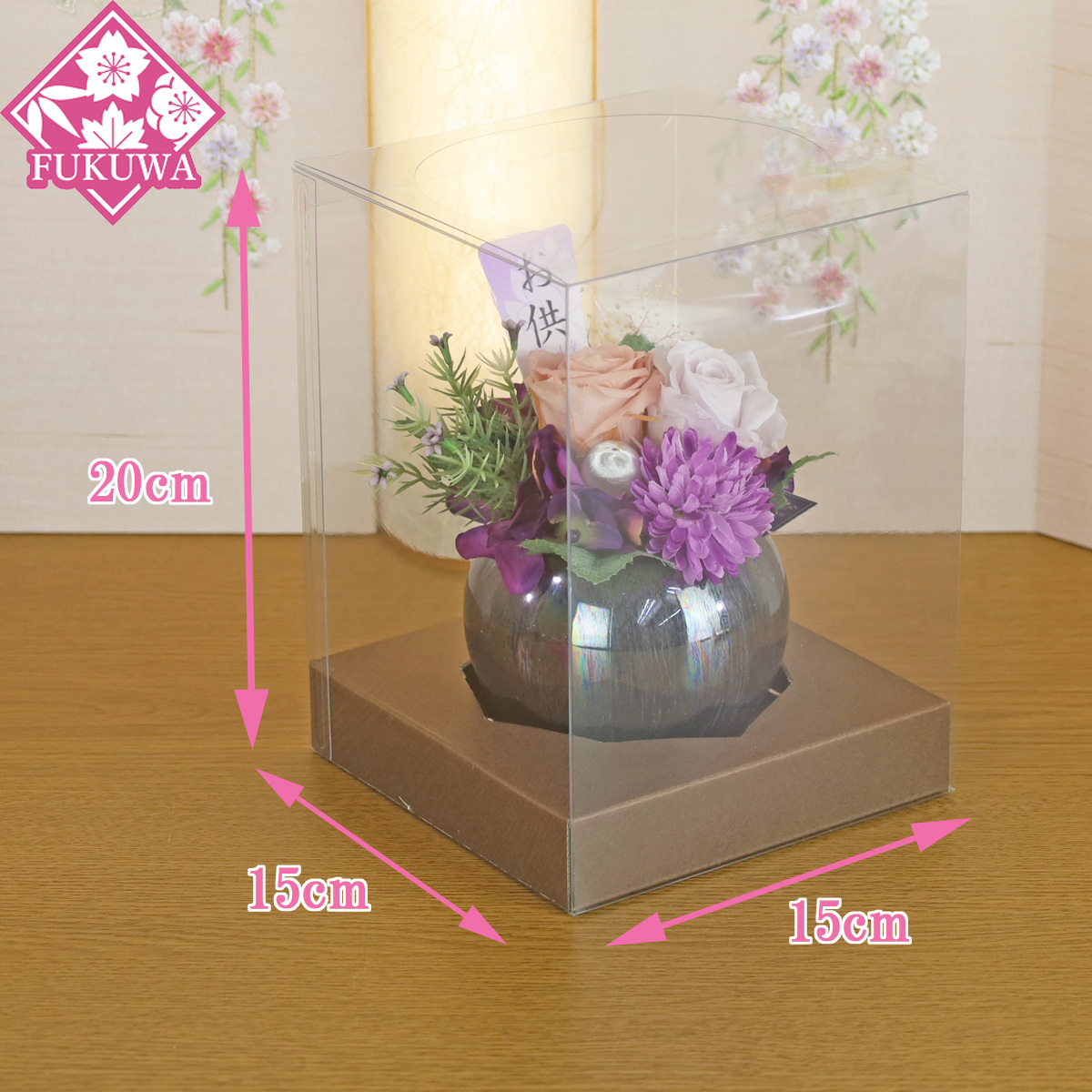 仏花 プリザーブドフラワー ケース入り(華美 ~はなび~ パープル ZY5020-425) お供え 花 仏花 仏壇用 收藏