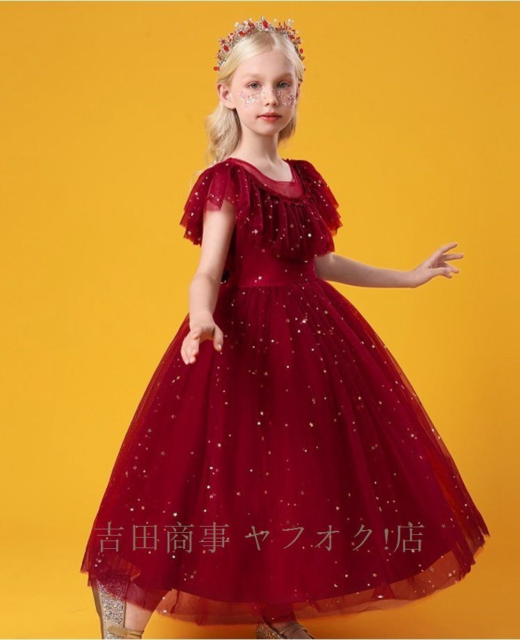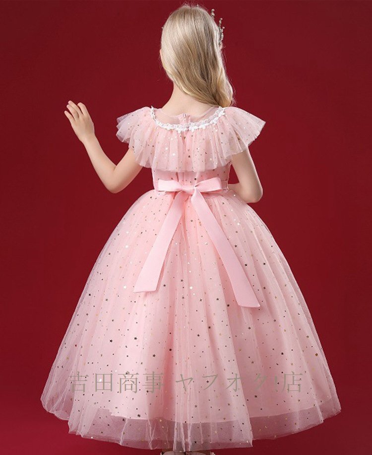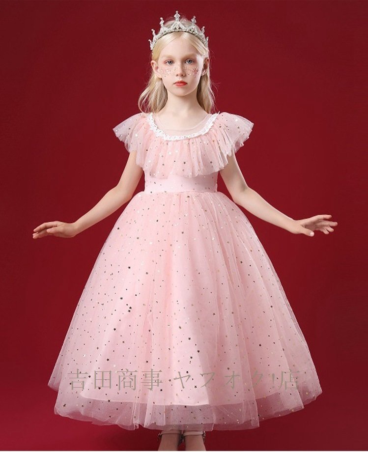 ☆新品発表会結婚式子供ドレスキッズドレスロングドレスピアノ発表会演奏会コンクールフォーマル お誕生日七五三記念撮影キラキラピンク 收藏