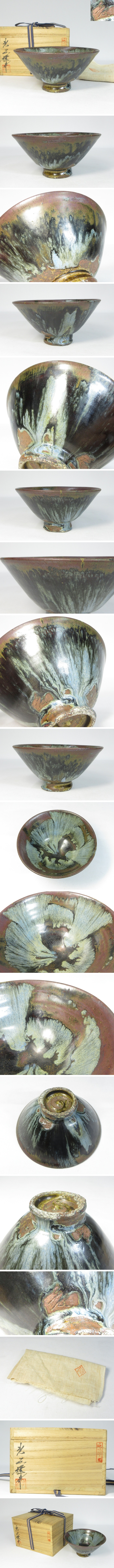 【B0388】茶道具 韓国陶芸 韓国人間文化財 池順鐸 窯変 茶碗 黒高麗 共箱 即決 送料込み 收藏