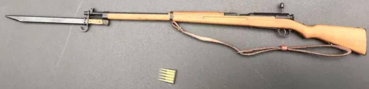 付属品:本体、銃剣、鞘、金属弾5発、本革銃ベルト