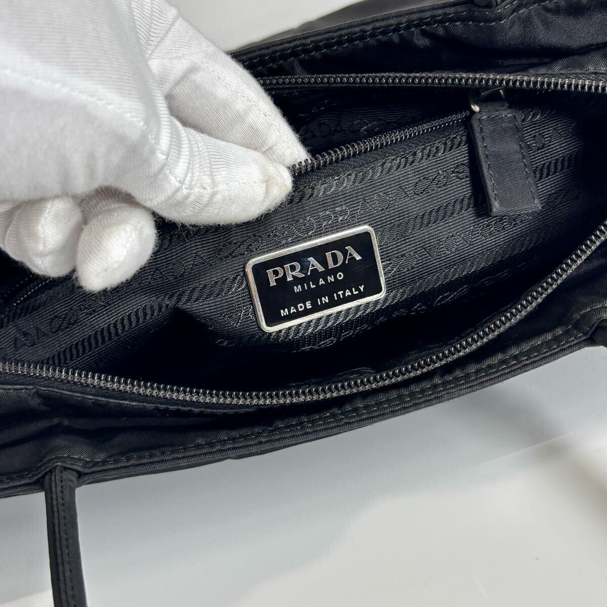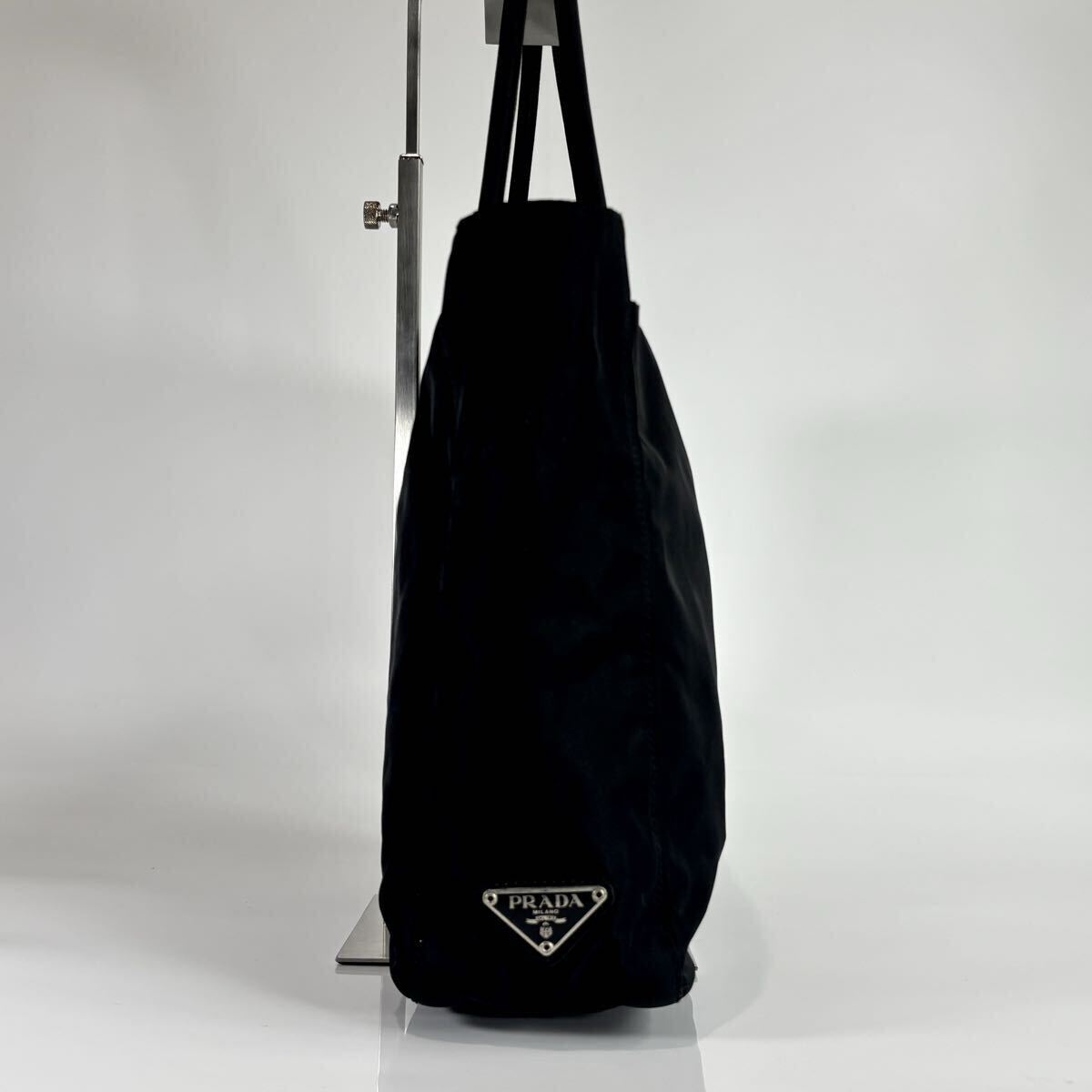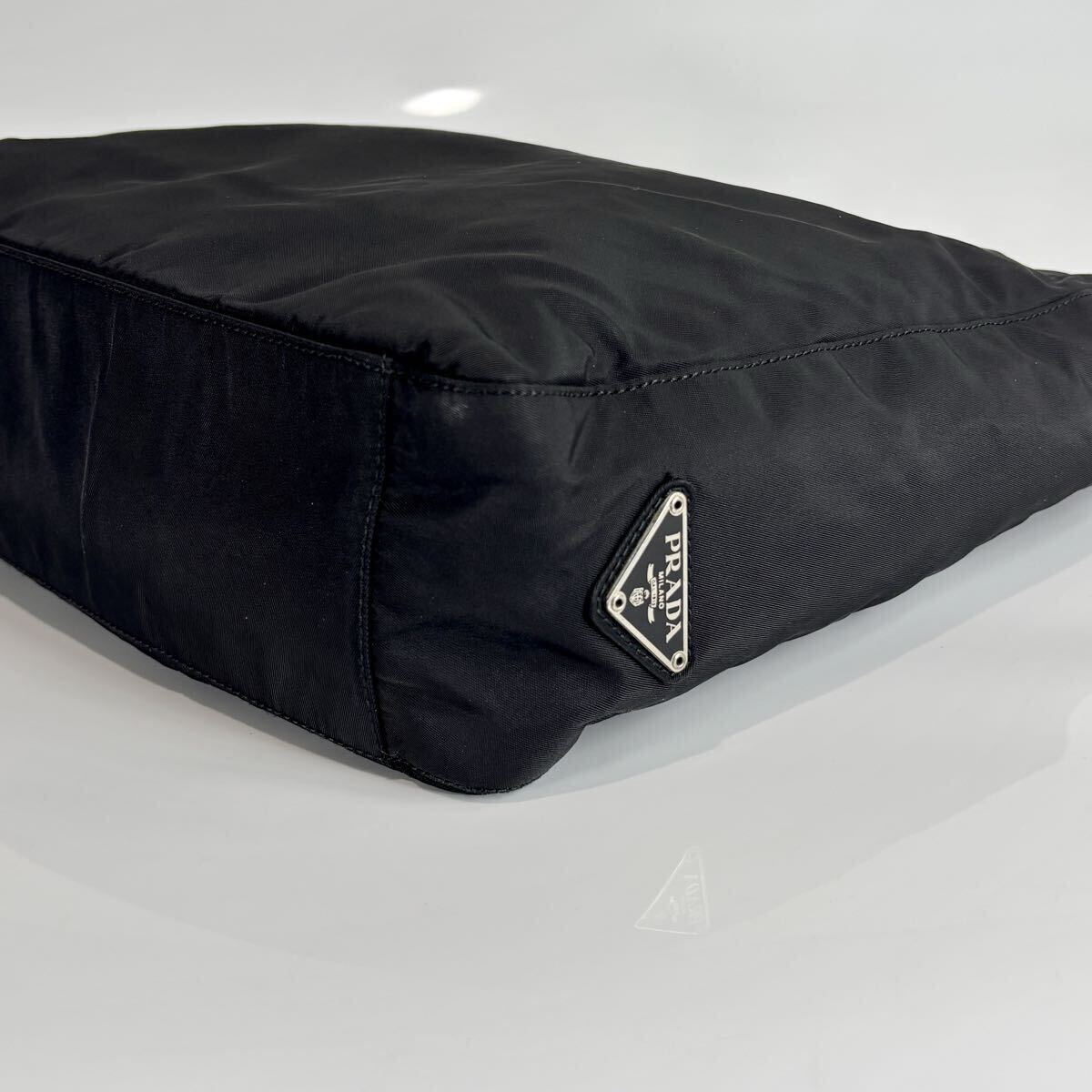 極美品 PRADA プラダ テスートナイロン トートバッグ ハンドバッグ ブラック 黒 白タグ付き 三角ロゴ 肩掛け可能 レディース 收藏