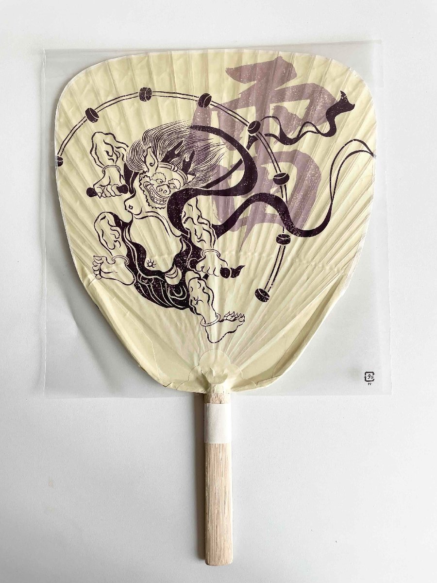 アウトドアや各種イベントに 網入 渋うちわ 風神雷神 民芸竹うちわ 收藏