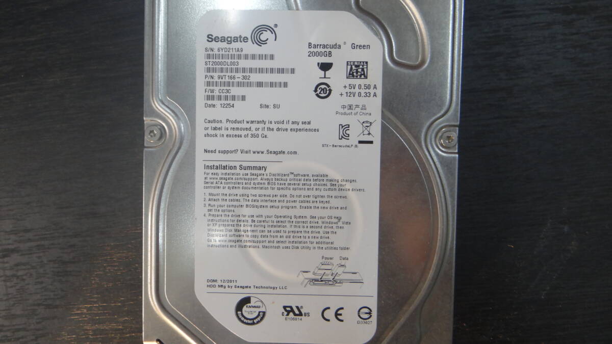 K17 SEAGATE ST2000DL003-9VT166 2TB SATA600 5900rpm 中古品 收藏