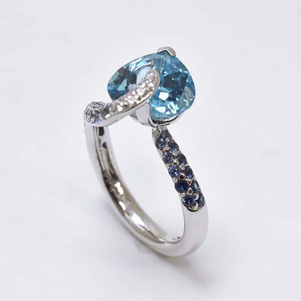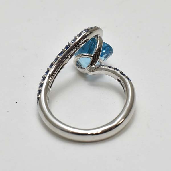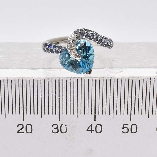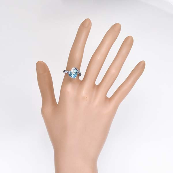 ハートシェイプのブルートパーズをメインにした18金ホワイトゴールド製のファッションリング。| 商品詳細 | |||||||||||||||||||||||||||||||||||||
