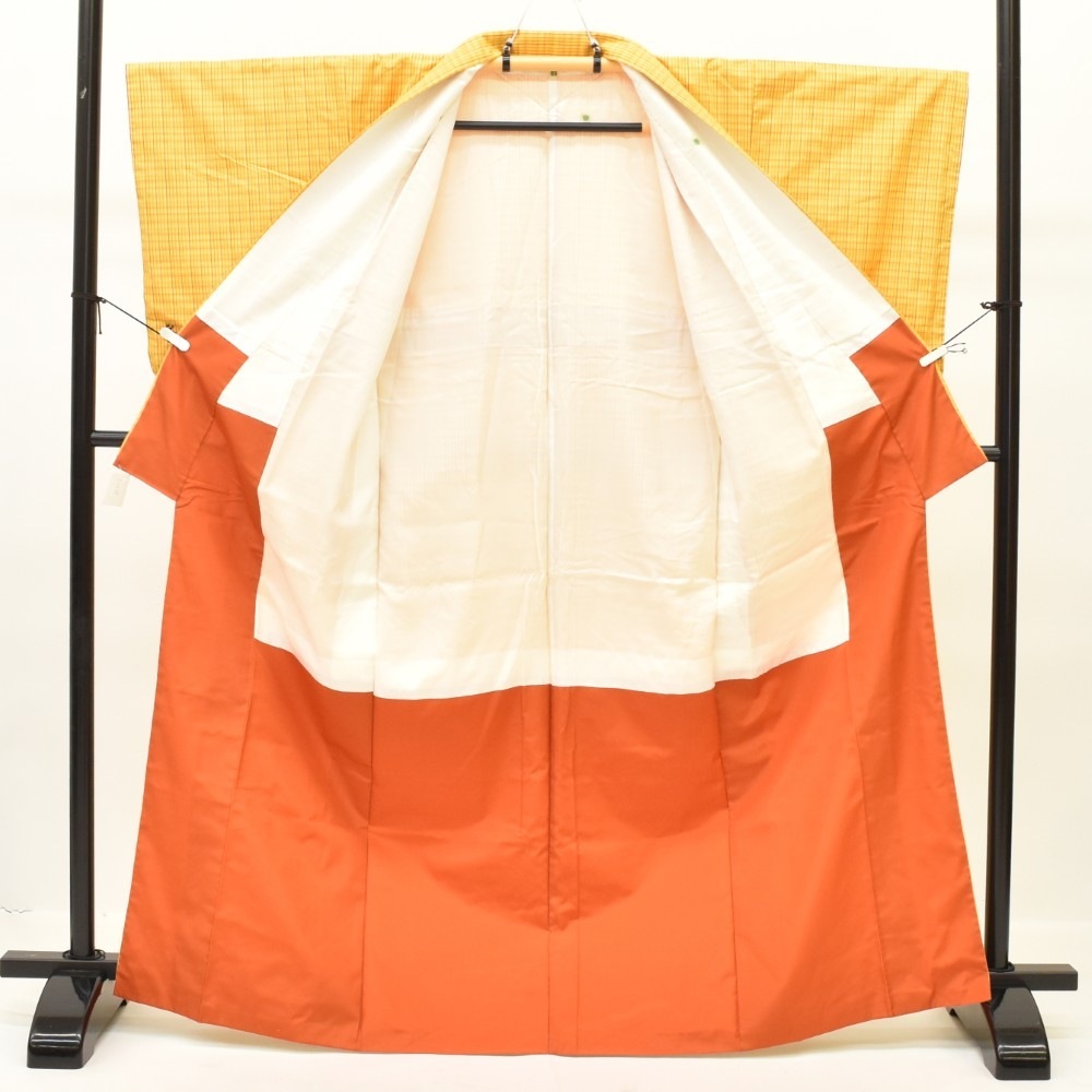 【商品説明】黄色に格子文様が施された女物の紬のアンサンブルです。 ※羽織紐は付いておりません 【シミ汚れ等の状態】 着物:後ろ身頃、左袖の表裏にスナップのサビが付いています 【ランク】 着物:表AA~A 裏AA 羽織:表AA 裏AAA ※商品のサイズや仕立てなどの詳細につきましては、商品画像よりご確認くださいませ。 ★サイズについて サイズに関しましては一品ずつ手で測っており、お着物や帯の性質上生地の伸縮性もございますので、 若干の誤差がある場合が多々ございます。 2cm未満の場合は、誤差となりますので大変申し訳ございませんが返品は承っておりません。予め御了承下さい。 |